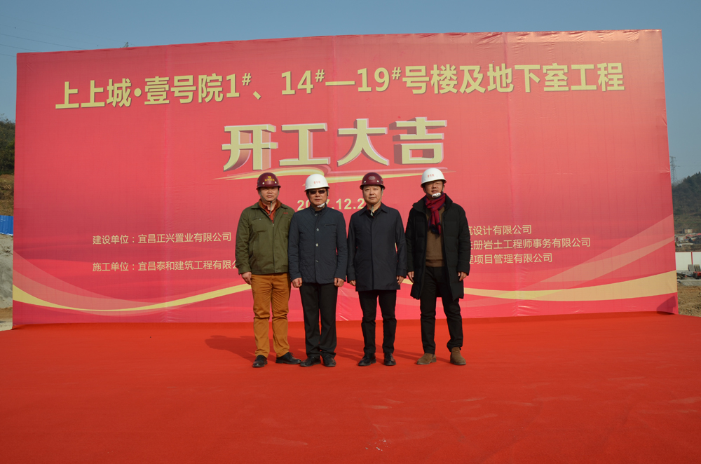 本站12月25日讯(通讯员:赵君)2017年12月25日上午,公司承建的上上城壹号院二标段工程在市伍家岗区金龙路与竹涛路及合东路交汇处隆重举行了开工仪式。出席开工仪式的有湖北宏峰房地产发展有限责任公司兼宜昌正兴置业有限公司总经理李伟,宜昌正兴置业有限公司常务副总石雄,宜昌宏业工程项目管理有限公司总监理工程师吴春芳,宜昌泰和建筑工程有限公司董事长谭业新,副总经理徐建军、杨旭东、王利民,党支部书记杨泽华、工会主席肖琴、总工程师胡体栋,各项目经理及公司机关、项目部员工共计百余人共同见证这一历史性时刻。