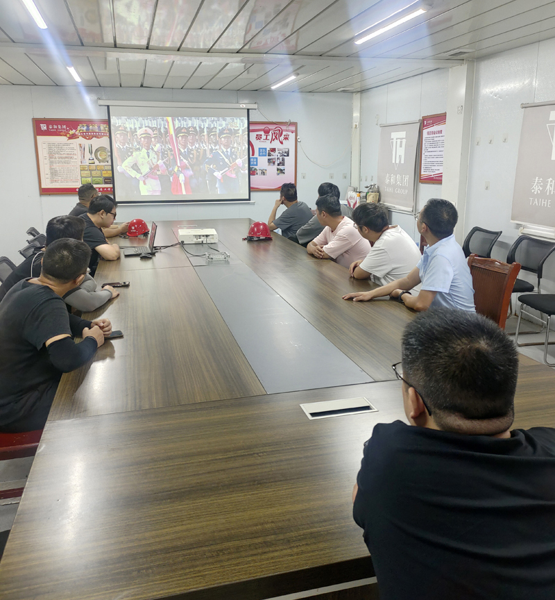 上午8时45分,距离阅兵开始还有一段时间,集团机关、各子公司、项目部的会议室里早已座无虚席。泰和职工们的眼神中透露出对祖国强大的自豪与对这场阅兵仪式的憧憬,大家都想要共同见证国家崛起的磅礴力量,传承穿越烽火的永恒荣光。